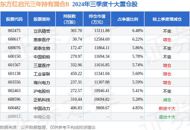 证券之星消息,日前东方红启元三年持有混合B基金公布三季报,2024年三季度最新规模15.84亿元,季度净值涨幅为1.88%。