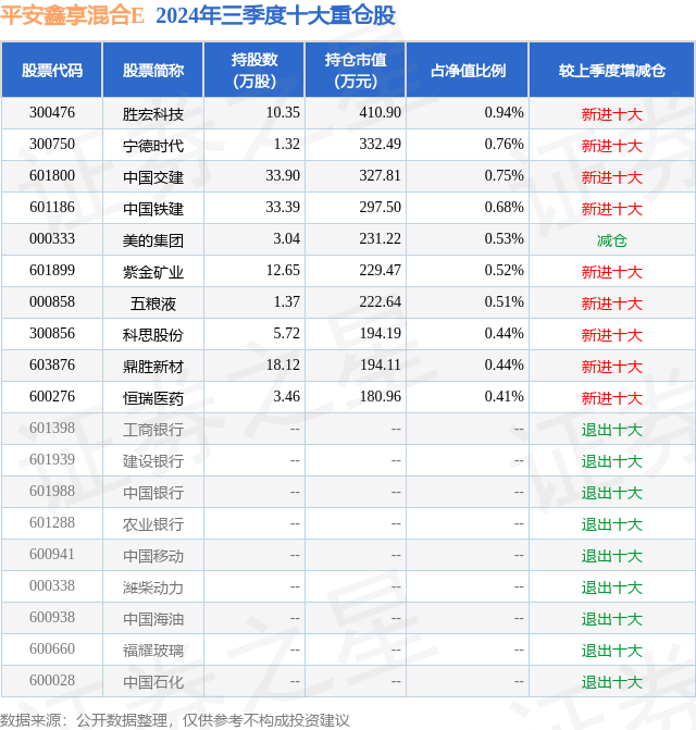 从基金规模来看,平安鑫享混合E基金2024年三季度公布的基金规模为2.64亿元,较上一期规模3.25亿元变化了-6119.6万元,环比变化了-18.81%。该基金最新一期资产配置为:股票占净值比14.57%,债券占净值比100.78%,现金占净值比1.92%。从基金持仓来看,该基金当季前十大股票仓位达5.98%,第一大重仓股为胜宏科技(300476),持仓占比为0.94%。