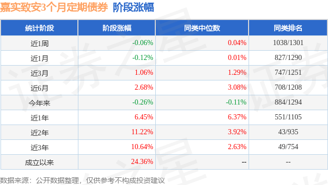 从业绩表现来看,嘉实致安3个月定期债券基金过去一年净值涨幅为6.15%,在同类基金中排名182/1063,同类基金过去一年净值涨幅中位数为4.0%。而基金过去一年的最大回撤为-0.95%,成立以来的最大回撤为-4.43%。