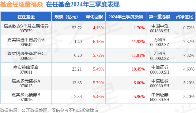证券之星消息,日前嘉实致安3个月定期债券基金公布三季报,2024年三季度最新规模53.72亿元,季度净值涨幅为1.7%。