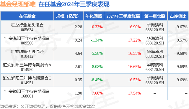 证券之星消息,日前汇安行业龙头混合基金公布三季报,2024年三季度最新规模2.28亿元,季度净值涨幅为16.9%。