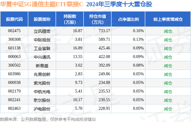证券之星消息,日前华夏中证5G通信主题ETF联接C基金公布三季报,2024年三季度最新规模22.54亿元,季度净值涨幅为9.33%。