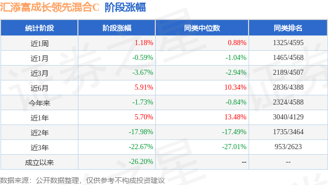 从业绩表现来看,汇添富成长领先混合C基金过去一年净值涨幅为-0.51%,在同类基金中排名2871/3979,同类基金过去一年净值涨幅中位数为5.4%。而基金过去一年的最大回撤为-19.14%,成立以来的最大回撤为-35.69%。