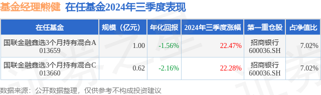 证券之星消息,日前国联金融鑫选3个月持有混合A基金公布三季报,2024年三季度最新规模1.0亿元,季度净值涨幅为22.47%。