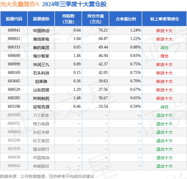 证券之星消息,日前光大永鑫混合A基金公布三季报,2024年三季度最新规模0.03亿元,季度净值涨幅为2.76%。