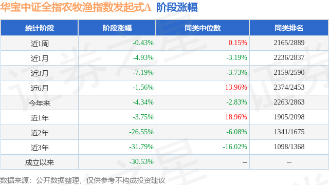 从业绩表现来看,华宝中证全指农牧渔指数发起式A基金过去一年净值涨幅为-2.11%,在同类基金中排名1687/1981,同类基金过去一年净值涨幅中位数为13.77%。而基金过去一年的最大回撤为-25.88%,成立以来的最大回撤为-43.65%。