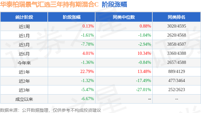 从业绩表现来看,华泰柏瑞景气汇选三年持有期混合C基金过去一年净值涨幅为17.96%,在同类基金中排名401/3979,同类基金过去一年净值涨幅中位数为5.4%。而基金过去一年的最大回撤为-20.54%,成立以来的最大回撤为-24.76%。