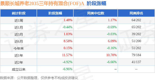 证券之星消息,日前景顺长城养老2035三年持有混合(FOF)A基金公布三季报,2024年三季度最新规模2.02亿元,季度净值涨幅为6.41%。
