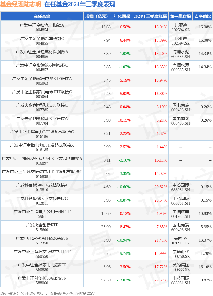 证券之星消息,日前广发科创板50ETF发起联接C基金公布三季报,2024年三季度最新规模3.93亿元,季度净值涨幅为20.54%。