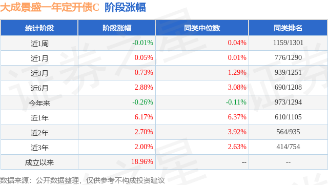 从业绩表现来看,大成景盛一年定开债C基金过去一年净值涨幅为4.71%,在同类基金中排名398/1063,同类基金过去一年净值涨幅中位数为4.0%。而基金过去一年的最大回撤为-2.29%,成立以来的最大回撤为-6.58%。