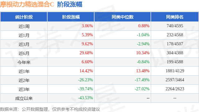 从业绩表现来看,摩根动力精选混合C基金过去一年净值涨幅为-10.17%,在同类基金中排名3797/3979,同类基金过去一年净值涨幅中位数为5.4%。而基金过去一年的最大回撤为-36.66%,成立以来的最大回撤为-65.71%。
