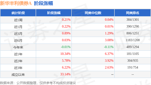 从业绩表现来看,新华丰利债券A基金过去一年净值涨幅为8.89%,在同类基金中排名44/1063,同类基金过去一年净值涨幅中位数为4.0%。而基金过去一年的最大回撤为-3.05%,成立以来的最大回撤为-7.11%。