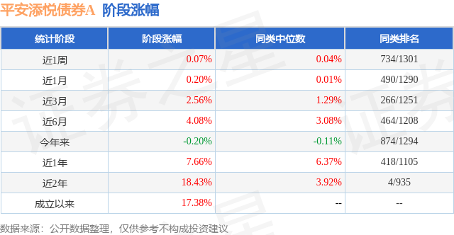 从业绩表现来看,平安添悦债券A基金过去一年净值涨幅为5.39%,在同类基金中排名280/1063,同类基金过去一年净值涨幅中位数为4.0%。而基金过去一年的最大回撤为-3.3%,成立以来的最大回撤为-4.69%。