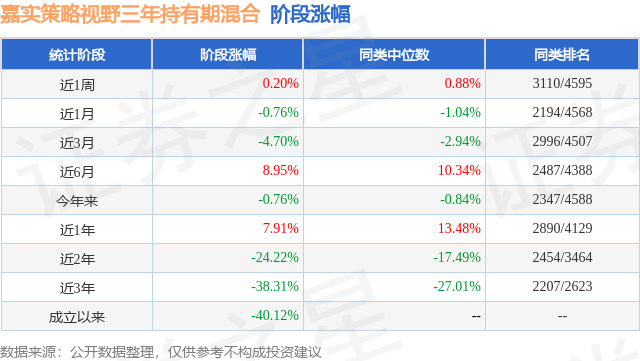 从业绩表现来看,嘉实策略视野三年持有期混合基金过去一年净值涨幅为0.64%,在同类基金中排名2762/3979,同类基金过去一年净值涨幅中位数为5.4%。而基金过去一年的最大回撤为-20.78%,成立以来的最大回撤为-48.93%。