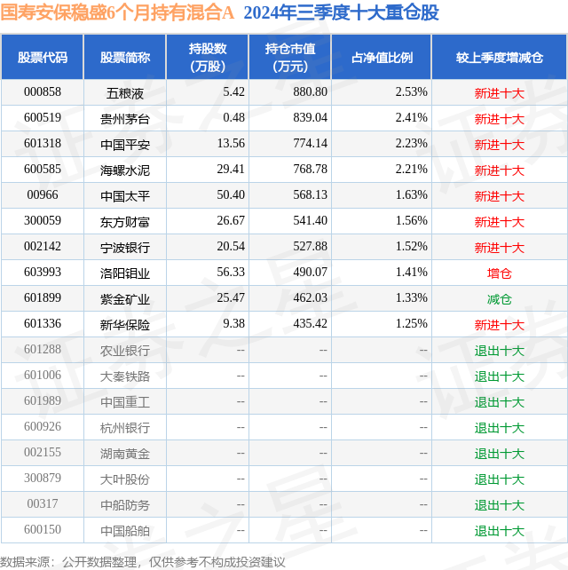 证券之星消息,日前国寿安保稳盛6个月持有混合A基金公布三季报,2024年三季度最新规模2.05亿元,季度净值涨幅为5.3%。
