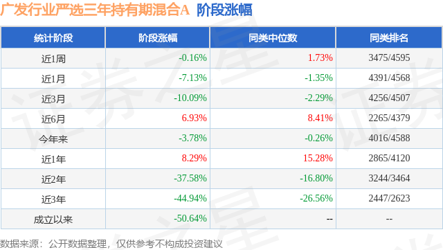 从业绩表现来看,广发行业严选三年持有期混合A基金过去一年净值涨幅为14.89%,在同类基金中排名1153/3979,同类基金过去一年净值涨幅中位数为5.4%。而基金过去一年的最大回撤为-25.61%,成立以来的最大回撤为-62.76%。