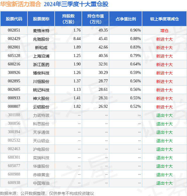 证券之星消息,日前华宝新活力混合基金公布三季报,2024年三季度最新规模0.52亿元,季度净值涨幅为2.05%。