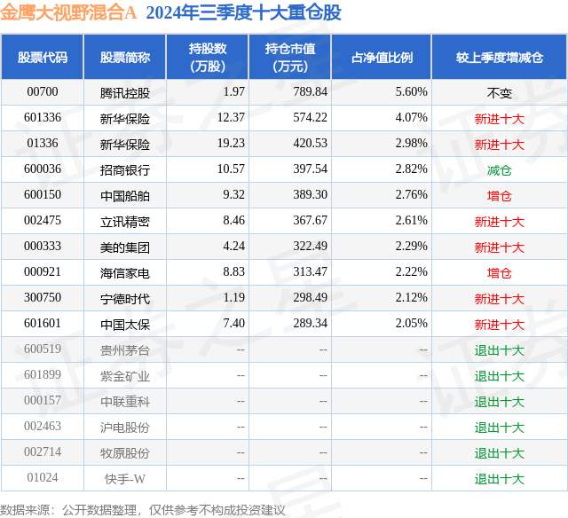 证券之星消息,日前金鹰大视野混合A基金公布三季报,2024年三季度最新规模0.66亿元,季度净值涨幅为12.53%。