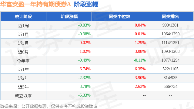 从业绩表现来看,华富安盈一年持有期债券A基金过去一年净值涨幅为5.34%,在同类基金中排名278/1063,同类基金过去一年净值涨幅中位数为4.0%。而基金过去一年的最大回撤为-3.08%,成立以来的最大回撤为-11.76%。