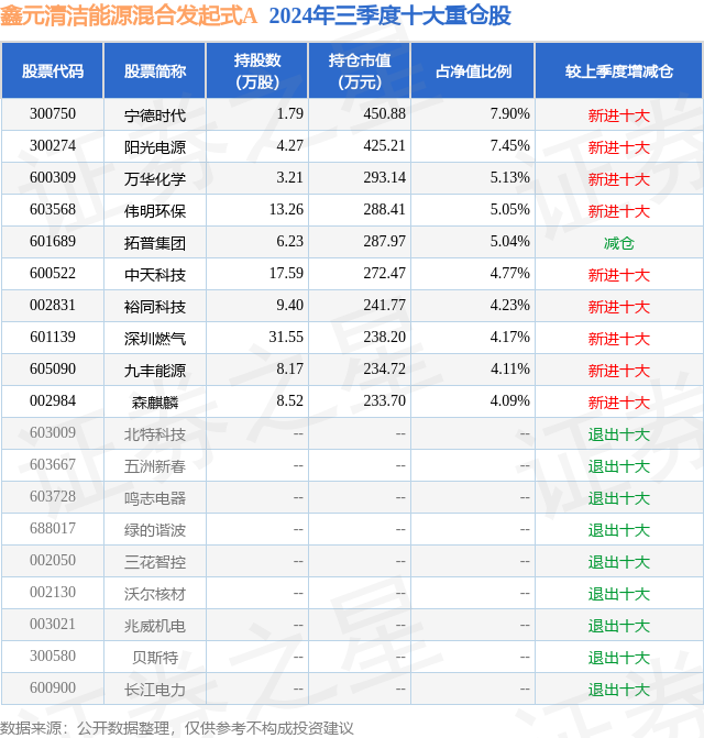 证券之星消息,日前鑫元清洁能源混合发起式A基金公布三季报,2024年三季度最新规模0.17亿元,季度净值涨幅为2.83%。