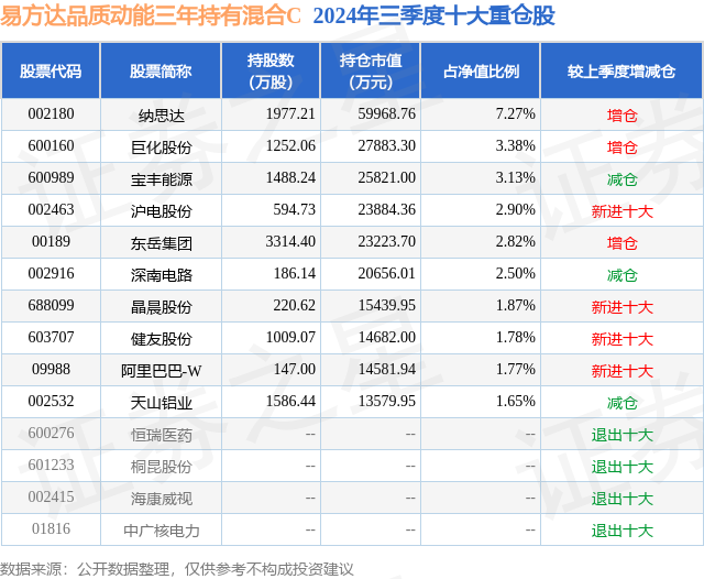 证券之星消息,日前易方达品质动能三年持有混合C基金公布三季报,2024年三季度最新规模10.84亿元,季度净值涨幅为4.24%。