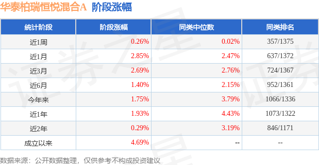 从业绩表现来看,华泰柏瑞恒悦混合A基金过去一年净值涨幅为1.93%,在同类基金中排名1073/1322,同类基金过去一年净值涨幅中位数为4.43%。而基金过去一年的最大回撤为-3.42%,成立以来的最大回撤为-5.25%。