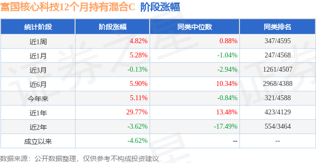 从业绩表现来看,富国核心科技12个月持有混合C基金过去一年净值涨幅为18.53%,在同类基金中排名397/3979,同类基金过去一年净值涨幅中位数为5.4%。而基金过去一年的最大回撤为-18.26%,成立以来的最大回撤为-46.53%。