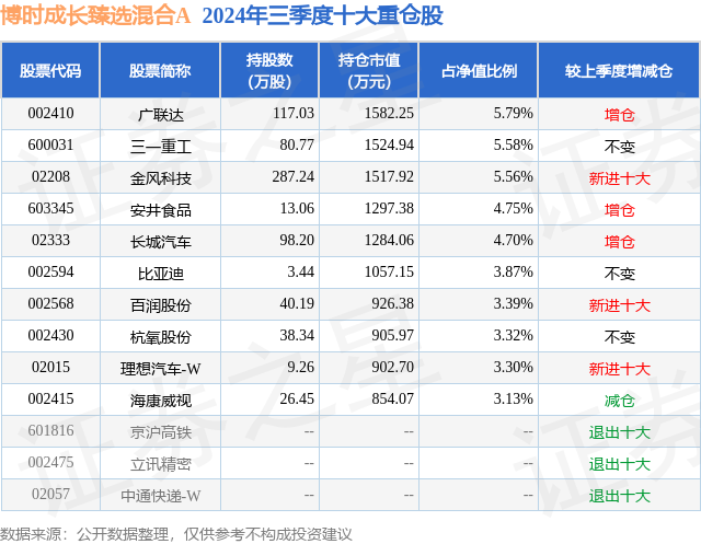 从基金规模来看,博时成长臻选混合A基金2024年三季度公布的基金规模为2.44亿元,较上一期规模2.15亿元变化了2979.53万元,环比变化了13.89%。该基金最新一期资产配置为:股票占净值比91.35%,无债券类资产,现金占净值比9.56%。从基金持仓来看,该基金当季前十大股票仓位达43.39%,第一大重仓股为广联达(002410),持仓占比为5.79%。
