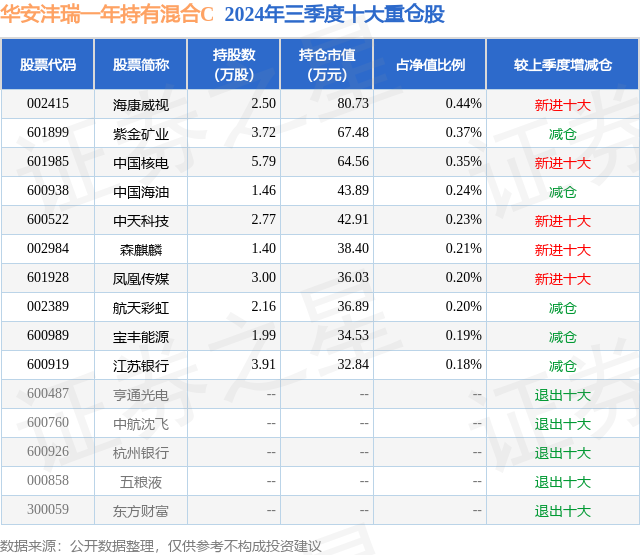 证券之星消息,日前华安沣瑞一年持有混合C基金公布三季报,2024年三季度最新规模0.12亿元,季度净值涨幅为-0.27%。