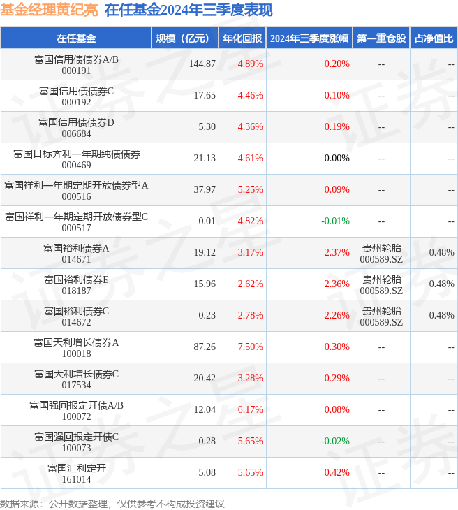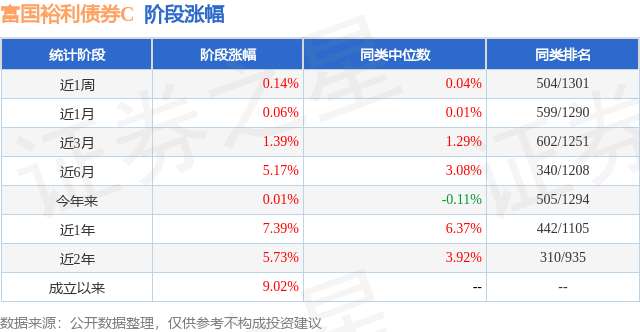 证券之星消息,日前富国裕利债券C基金公布三季报,2024年三季度最新规模0.23亿元,季度净值涨幅为2.26%。