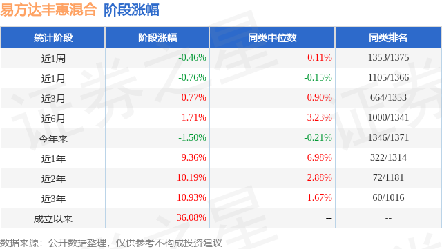 从业绩表现来看,易方达丰惠混合基金过去一年净值涨幅为8.19%,在同类基金中排名150/1322,同类基金过去一年净值涨幅中位数为4.43%。而基金过去一年的最大回撤为-2.02%,成立以来的最大回撤为-16.68%。