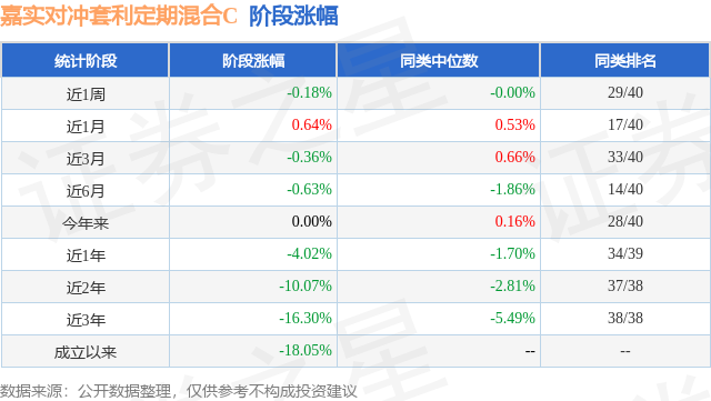 从业绩表现来看,嘉实对冲套利定期混合C基金过去一年净值涨幅为-5.25%,在同类基金中排名37/38,同类基金过去一年净值涨幅中位数为-1.95%。而基金过去一年的最大回撤为-8.14%,成立以来的最大回撤为-19.16%。