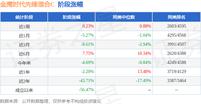 从业绩表现来看,金鹰时代先锋混合C基金过去一年净值涨幅为-1.48%,在同类基金中排名3080/3979,同类基金过去一年净值涨幅中位数为5.4%。而基金过去一年的最大回撤为-34.0%,成立以来的最大回撤为-64.62%。