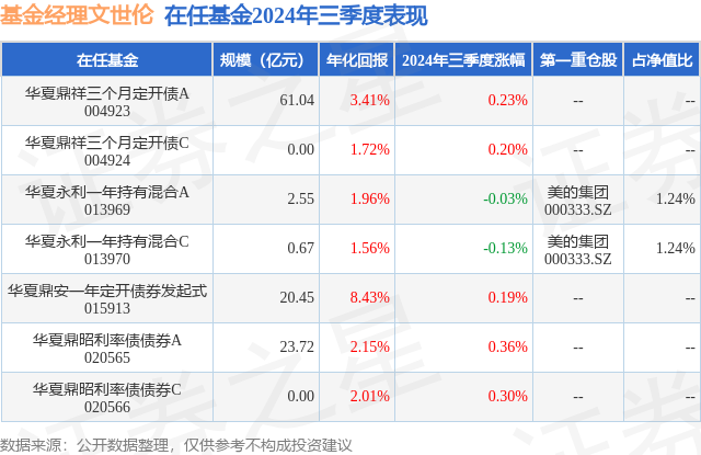 证券之星消息,日前华夏永利一年持有混合C基金公布三季报,2024年三季度最新规模0.67亿元,季度净值涨幅为-0.13%。