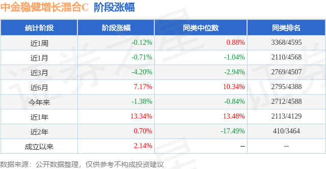 从业绩表现来看,中金稳健增长混合C基金过去一年净值涨幅为13.95%,在同类基金中排名720/3979,同类基金过去一年净值涨幅中位数为5.4%。而基金过去一年的最大回撤为-25.03%,成立以来的最大回撤为-32.71%。