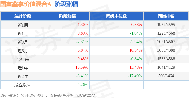 从业绩表现来看,国富鑫享价值混合A基金过去一年净值涨幅为11.34%,在同类基金中排名1079/3979,同类基金过去一年净值涨幅中位数为5.4%。而基金过去一年的最大回撤为-13.52%,成立以来的最大回撤为-21.62%。