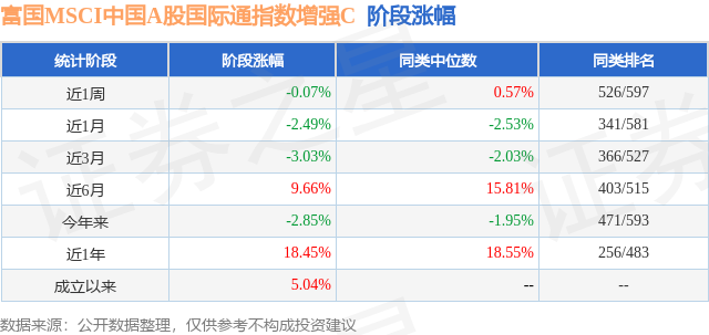 证券之星消息,日前富国MSCI中国A股国际通指数增强C基金公布三季报,2024年三季度最新规模0.69亿元,季度净值涨幅为13.2%。