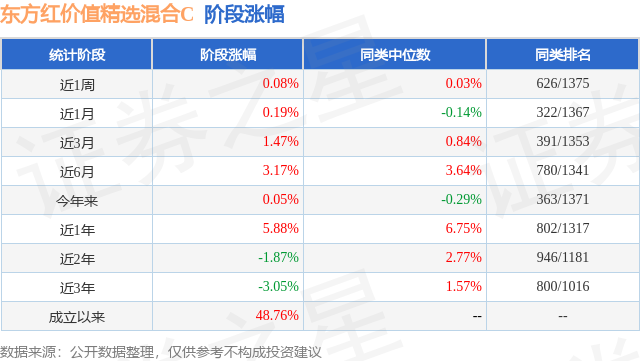 从业绩表现来看,东方红价值精选混合C基金过去一年净值涨幅为1.88%,在同类基金中排名1088/1322,同类基金过去一年净值涨幅中位数为4.43%。而基金过去一年的最大回撤为-5.52%,成立以来的最大回撤为-10.8%。