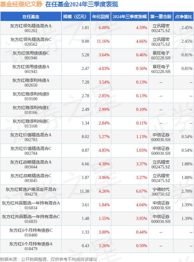 证券之星消息,日前东方红价值精选混合C基金公布三季报,2024年三季度最新规模0.87亿元,季度净值涨幅为1.03%。