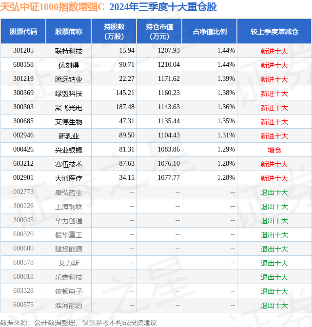 证券之星消息,日前天弘中证1000指数增强C基金公布三季报,2024年三季度最新规模4.35亿元,季度净值涨幅为16.0%。
