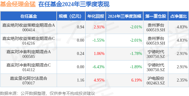 证券之星消息,日前嘉实绝对收益策略定期混合C基金公布三季报,2024年三季度最新规模0.0亿元,季度净值涨幅为-2.01%。
