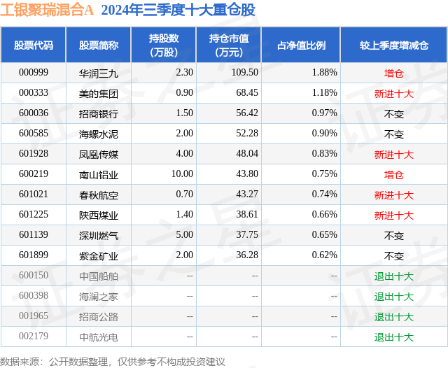 证券之星消息,日前工银聚瑞混合A基金公布三季报,2024年三季度最新规模0.42亿元,季度净值涨幅为2.61%。