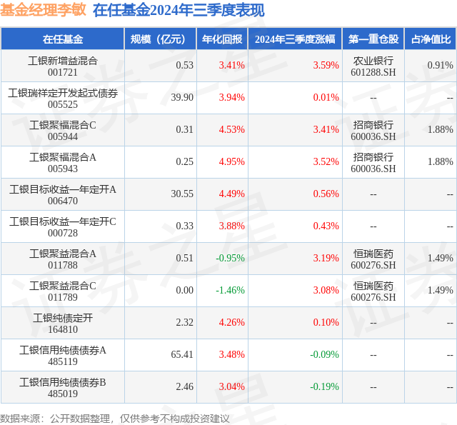 证券之星消息,日前工银聚益混合A基金公布三季报,2024年三季度最新规模0.51亿元,季度净值涨幅为3.19%。