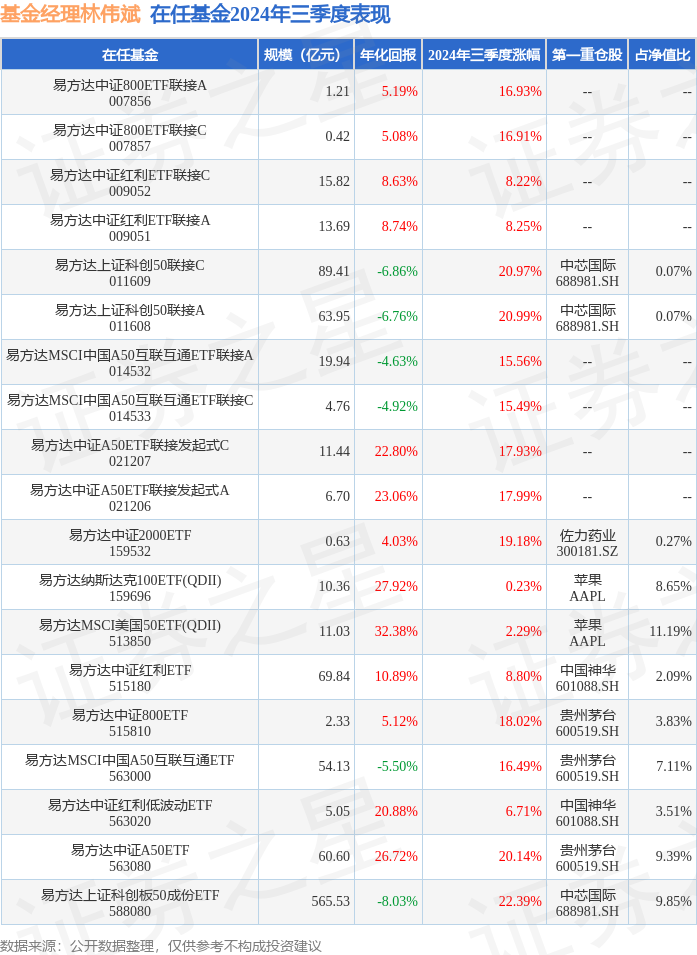 证券之星消息,日前易方达上证科创50联接C基金公布三季报,2024年三季度最新规模89.41亿元,季度净值涨幅为20.97%。