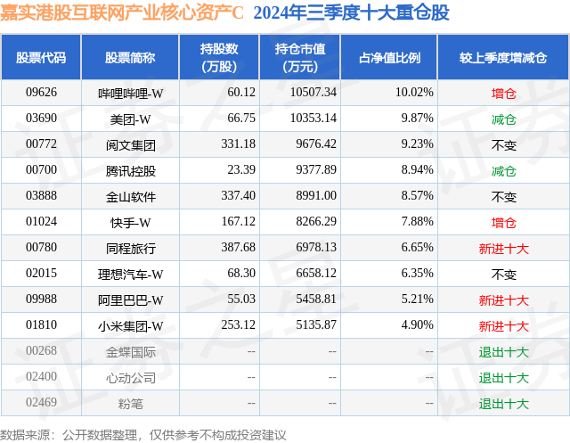 证券之星消息,日前嘉实港股互联网产业核心资产C基金公布三季报,2024年三季度最新规模7.42亿元,季度净值涨幅为23.24%。