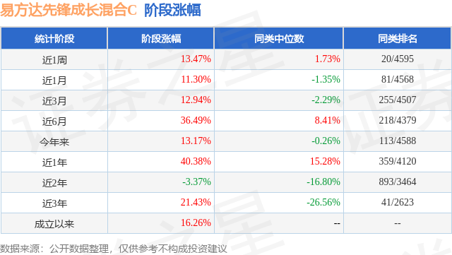 从业绩表现来看,易方达先锋成长混合C基金过去一年净值涨幅为4.61%,在同类基金中排名2108/3979,同类基金过去一年净值涨幅中位数为5.4%。而基金过去一年的最大回撤为-29.84%,成立以来的最大回撤为-40.96%。