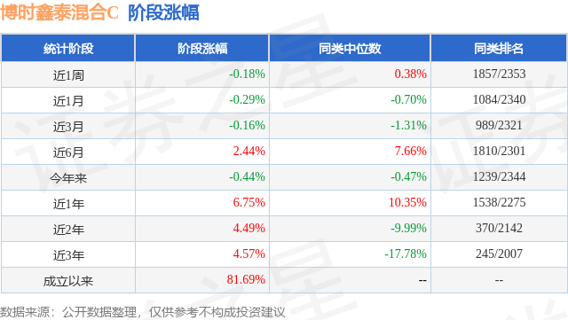 从业绩表现来看,博时鑫泰混合C基金过去一年净值涨幅为5.47%,在同类基金中排名1037/2261,同类基金过去一年净值涨幅中位数为5.1%。而基金过去一年的最大回撤为-2.57%,成立以来的最大回撤为-6.31%。