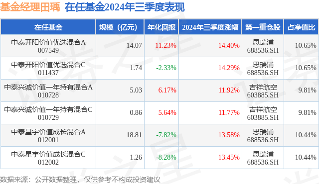 证券之星消息,日前中泰星宇价值成长混合C基金公布三季报,2024年三季度最新规模1.26亿元,季度净值涨幅为13.45%。