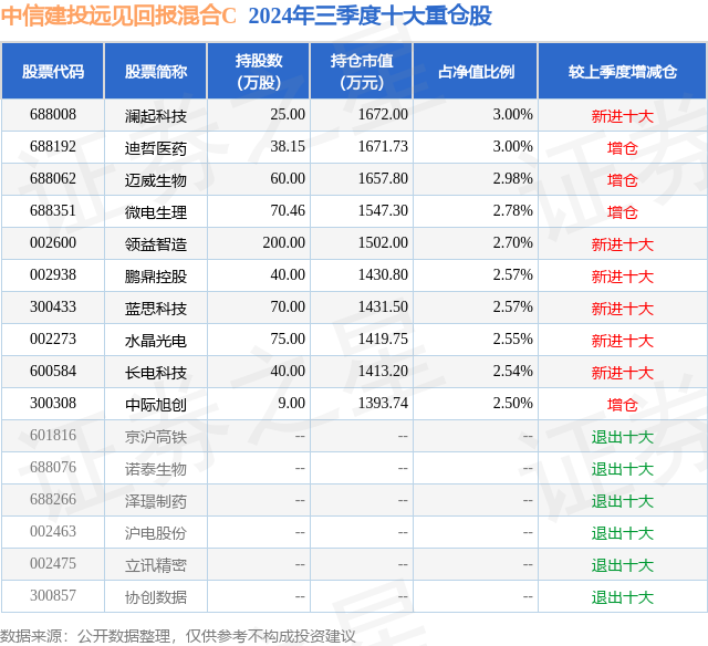 证券之星消息,日前中信建投远见回报混合C基金公布三季报,2024年三季度最新规模1.0亿元,季度净值涨幅为4.15%。