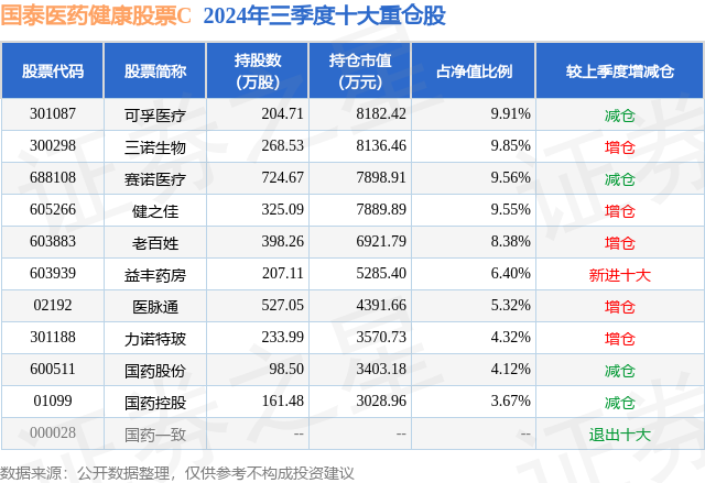 证券之星消息,日前国泰医药健康股票C基金公布三季报,2024年三季度最新规模2.14亿元,季度净值涨幅为9.95%。